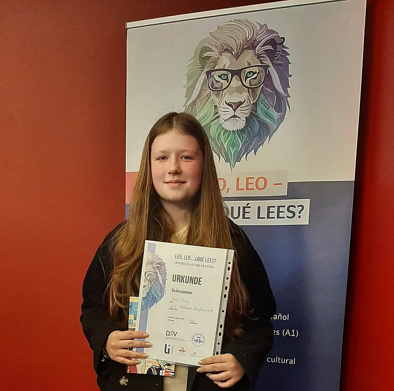 Am 16. April 2026 fand das Finale des Vorlesewettbewerbs „Leo, leo, ¿qué lees?“ in den Räumlichkeiten des Instituto Cervantes in Hamburg statt. Schulsiegerinnen und Schulsieger aus 50 Hamburger Schulen, darunter unsere Vertreterin Sarah König, kamen zusammen, um an diesem Fest der spanischen Sprache teilzunehmen. Die Atmosphäre war geprägt von Begeisterung, Freude und Verbundenheit zwischen Lehrer:innen, Schüler:innen und weiteren Mitwirkenden.